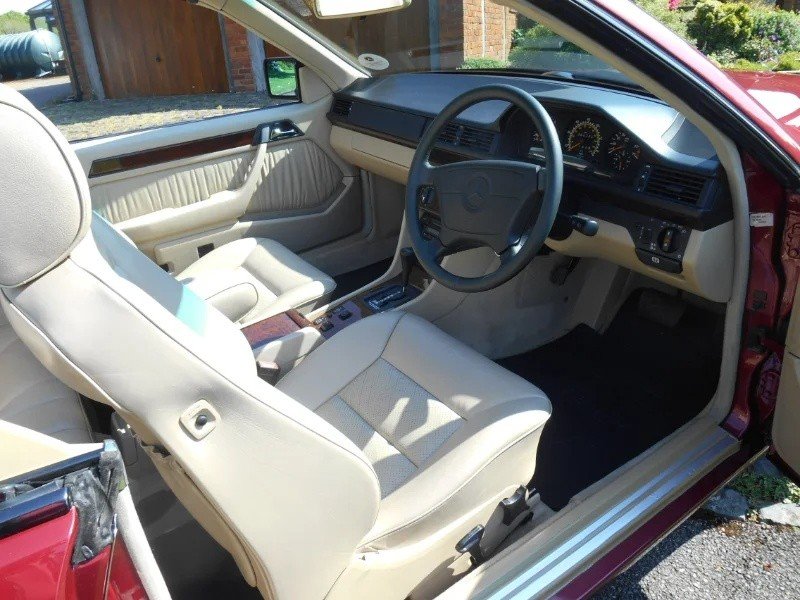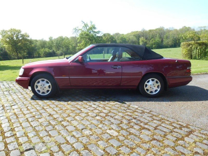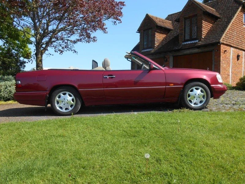 This Rare Low Mileage MERCEDES E220 AUTOMATIC CABRIOLET is Finished in ALMANDINE RED METALLIC with MUSHROOM LEATHER TRIM and WALNUT FACIA. The car was First Registered on 3rd August 1994 by DINGLE MERCEDES of Llandudno at a Sale Price of £38,500 to the First keeper who OWNED the Car for 22YEARS UNTIL 2016 when he Sold the car at 46000mls. On 19th October 2018 the car was Sold to a Mr Holder at 48,000mls who Owned the car Until March 2022 at a Mileage of 56,500 mls when it was Sold to its Last Owner who Only Sold it because of a Life Style Change by Moving to Spain Permanently in April 2024. Up until then having Spent Many Months Searching for such a car as this with its Comprehensive History and Outstanding Condition he had intended to Keep the car for ever being a Member of the Official Mercedes Owners Club. During the Cars Life it has had 19 SERVICES the Last Being at 60,374mls on 20th October 2023 and on the 23rd March 2022 it had the Head Gasket replaced along with the Head Being Skimmed at 56,245mls and a Cost of £2,814.54p. The Original Supplying Dealer Invoice that is in The FULL SERVICE HISTORY FILE shows an INVOICE PRICE NEW of £38,500.00p. The Specification & Extras Include Metallic Paint, DIAMOND CUT ALLOY WHEELS, Leather Trim, Tinted Electric Windows X4, ELECTRIC MOHAIR HOOD in Black, Classic Radio, Front Arm Rest, Head lamp Wash Wipe, Outside Temperature Gauge, Wind Deflector, and HEATED SEATS. The car Comes with its Original 2 Sets of Keys, FULL ORIGINAL MERCEDES SERVICE PACK with ORIGINAL FULLY STAMPED SERVICE BOOK with 19 STAMPS and Factory BUILD SHEET, Also with the car are FILES with EVERY SERVICE INVOICE and MOTs From NEW along with Lots of Literature regards Mercedes E220 Cabriolets. This RARE LOW MILEAGE EXAMPLE is a TRUE COLLECTORS CAR and can ONLY INCREASE in VALUE OVER THE COMING YEARS as ALL MERCEDES CONVERTIBLES HAVE DONE as HISTORY SHOWS. Also there are VERY FEW PROPER ADULT FOUR SEAT CONVERTBLES being Manufactured these days.